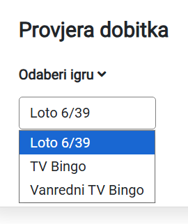 - Nađi odjeljak Provjera dobitka / TV Bingo / Rezultati. Nalazi se na sredini stranice,a izgleda ovako:
